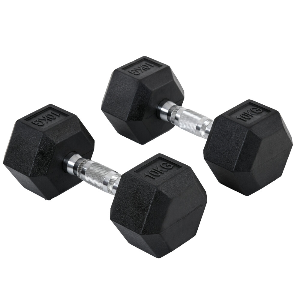 HOMCOM 20kg Hex Dumbbells Set Rubber Coated Weights Home Gym Fitness 2x10kg