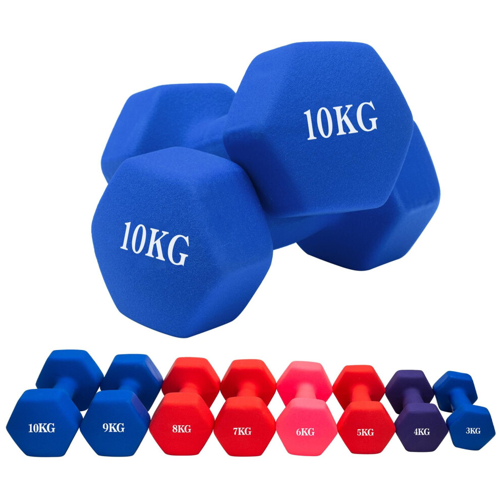 (Blue, 2 x 10KG) Hampton&Stewart Neoprene Dumbbells Weights Gym