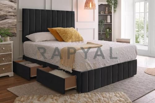 Fireplaces 4 Life Plush Rio Divan Bed Set with Orthopaedic Mattress and 24" Headboard *Storage Available (Black, 2 Drawers Same Side, 3ft Single (90 x 190 cm))