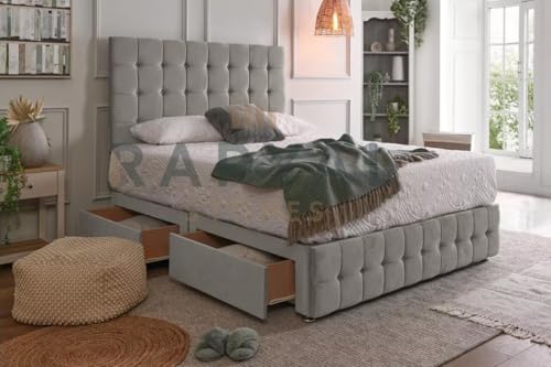 Fireplaces 4 Life Plush Faygo Divan Bed Set With Orthopaedic Mattress, 24" Headboard and Footboard (Silver, 2 Drawers Same Side, 3ft6 Large Single (107 x 190 cm))