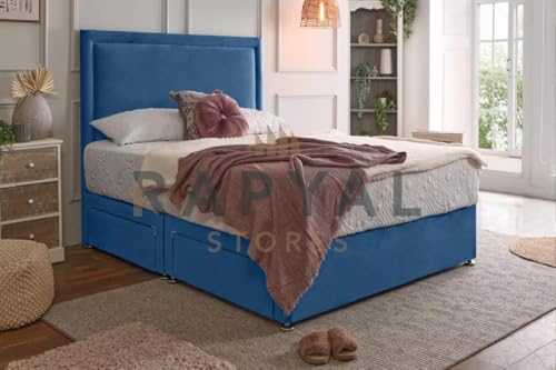 Fireplaces 4 Life Plush Rio Divan Bed Set with Orthopaedic Mattress and 24" Headboard *Storage Available (Blue, 2 Drawers Same Side, 3ft Single (90 x 190 cm))