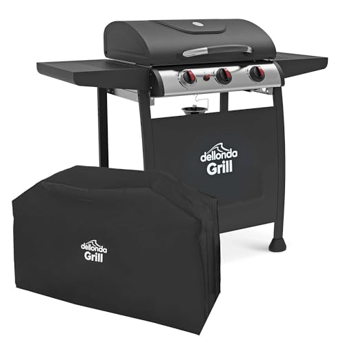 Dellonda 3 Burner Gas BBQ Grill with Piezo Ignition, Built-In Thermometer and Water Resistant Cover, Black/Stainless Steel - DG228