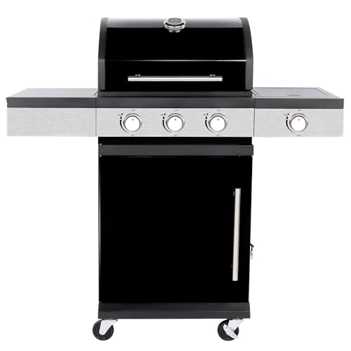 Woodland Grill 3+1 Burner Gas BBQ with Side Burner, Cast Iron Cooking Grid, Stainless Steel Warming Rack, Flame Tamers, Storage Cabinet, ABS Control Knobs & Compact Outdoor Design – OC01BQ31105 [2025]