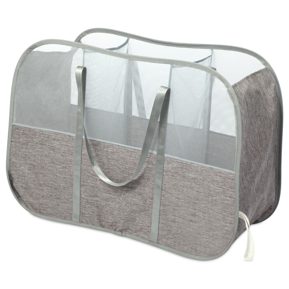 Handy Laundry Foldable Laundry Basket - Popup and Collapsible, Durable Mesh Material, Easy Carry Handles. Great Hamper for College Dorm, Laundry Room or Travel. (White | 3-Compartments)