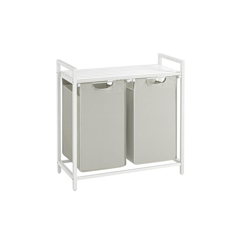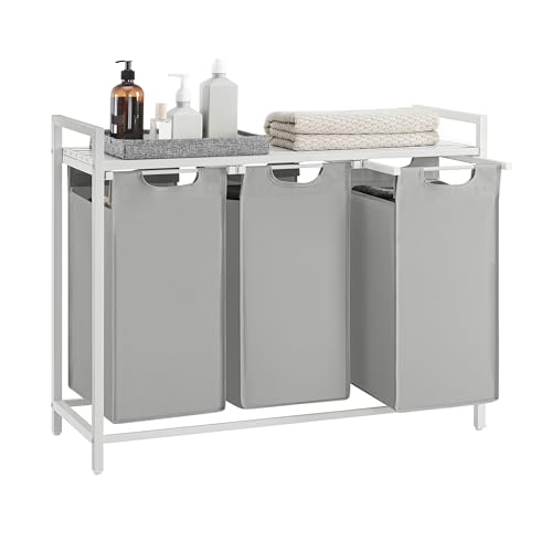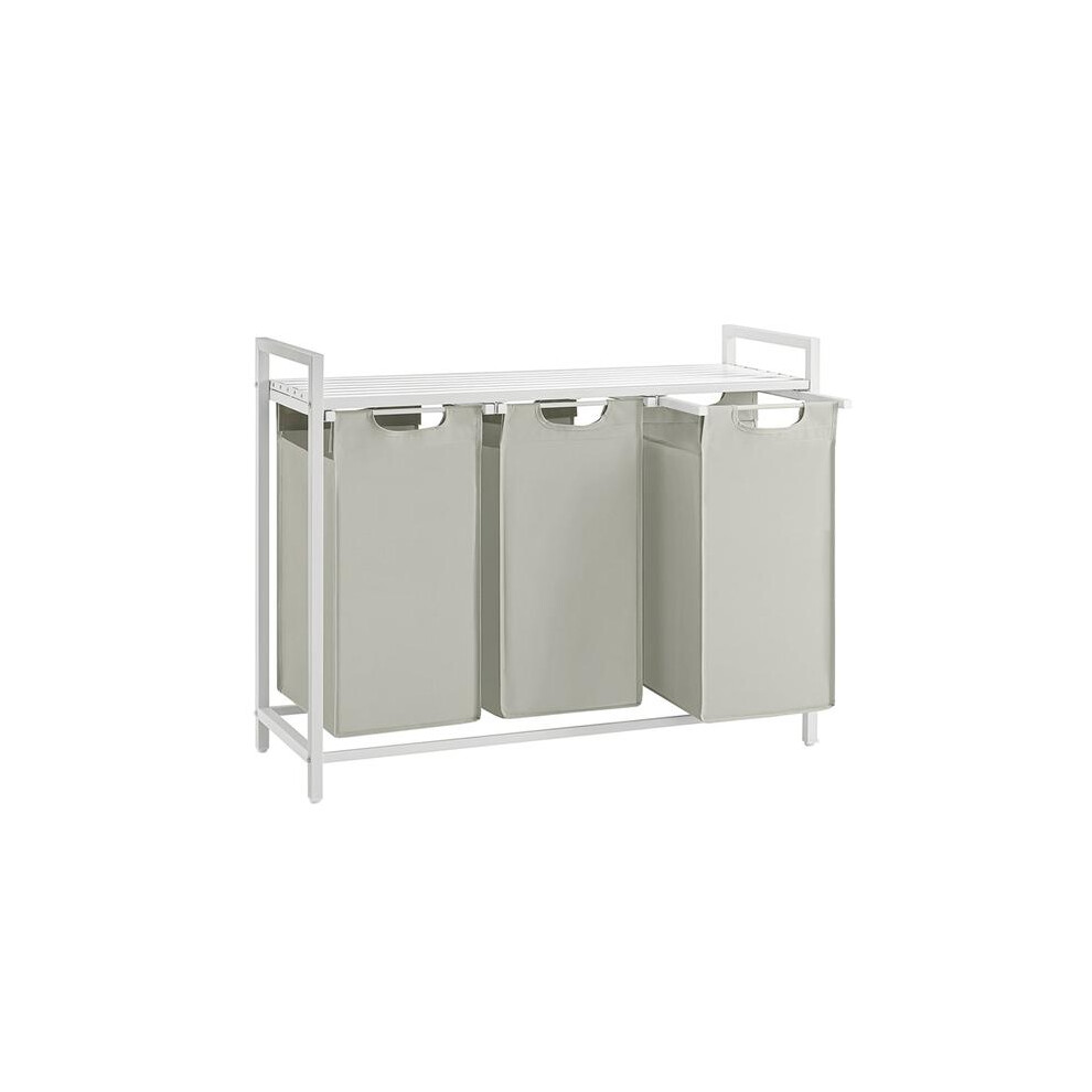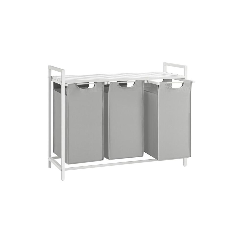 VASAGLE Laundry Basket, 3-Compartment Laundry Hamper, Pull-Out and Removable Liner Bags, Clothes Sorter, Shelf, Metal Frame, 3 x 40 L, 92.5 x 33 x 72 cm, Dove Grey and Matte White BLH301W03