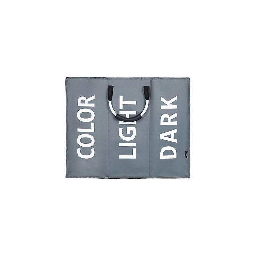(Colour, One size) DOKEHOM Large Collapsible Washing Laundry Basket Bag with 3 Compartment for Bedroom Fabric (Grey)