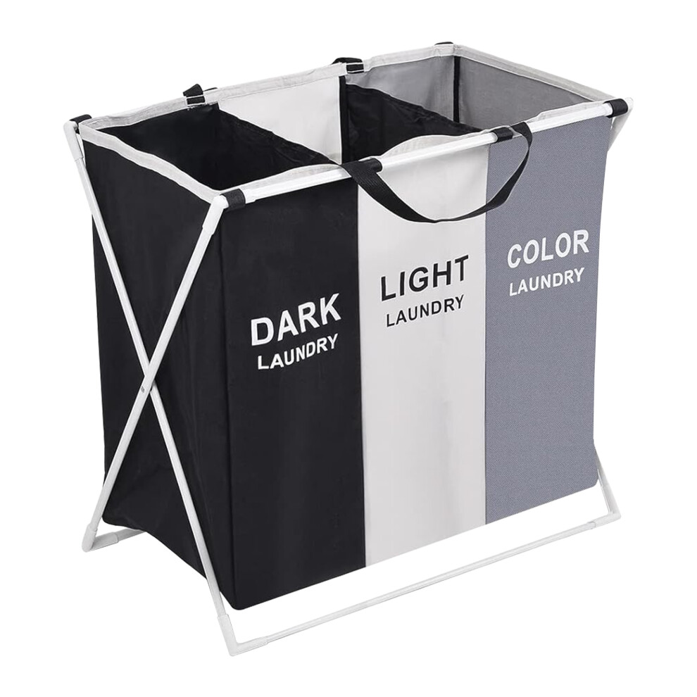 Triple Compartment Laundry Basket, Soft Grip, Foldable Laundry Organizer, For College Dormitory, 3 Segments