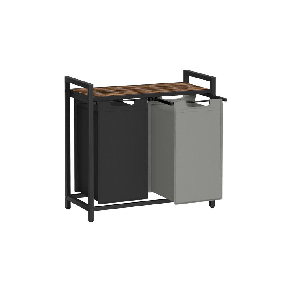 (Bicolor, 2-Basket x 46L) Laundry Basket with Storage Shelf, 2/3-Compartment Laundry Hamper, Pull-Out and Removable Laundry Bags, Laundry Sorter