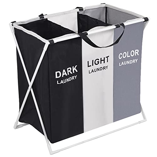 BALLSHOP Foldable Laundry Basket Laundry Organiser Washable Large Washing Basket Folding Washing Storage Bin with 3 Compartment for Bathroom Bedroom Home College