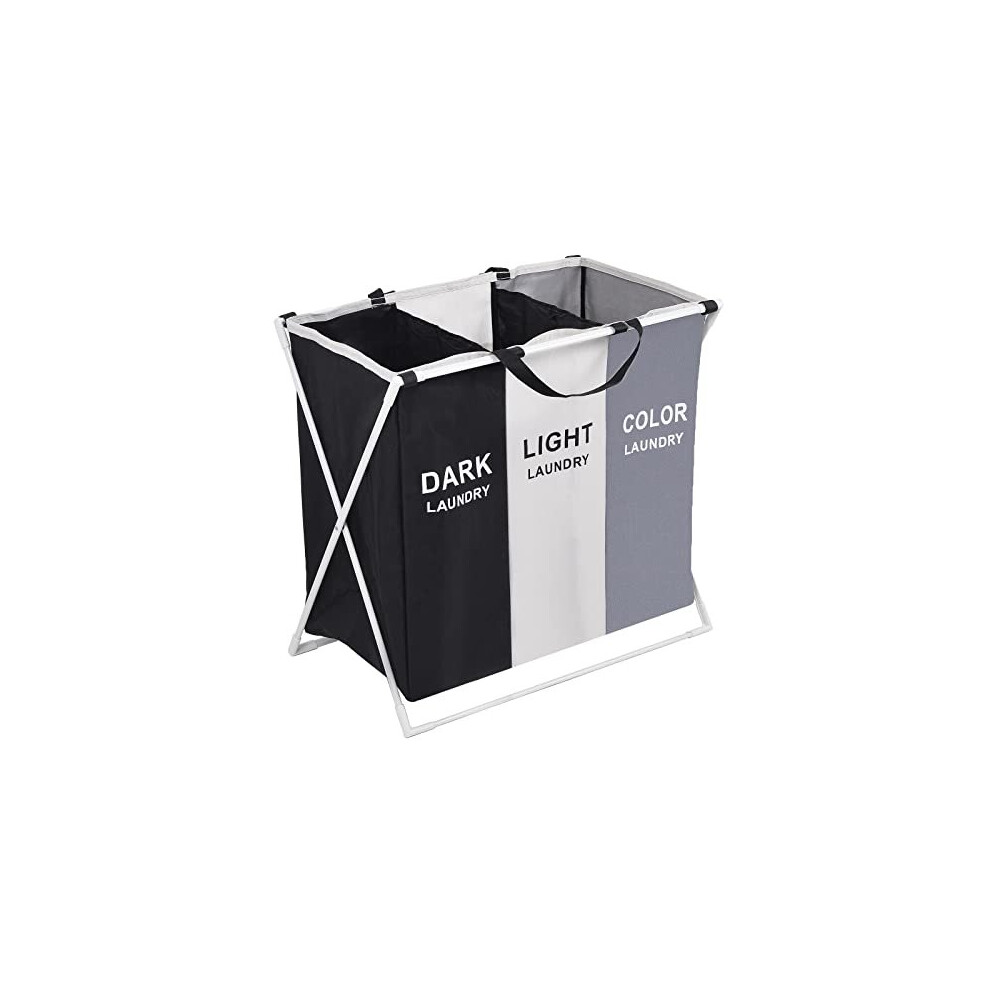 Rainberg Laundry Basket with Aluminum Bracket and Handle with 3 Compartment