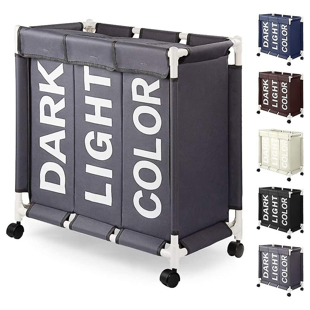 Rolling Laundry Hamper - 90l Capacity - 3 Compartment - Multifunction Storage Basket - Grey