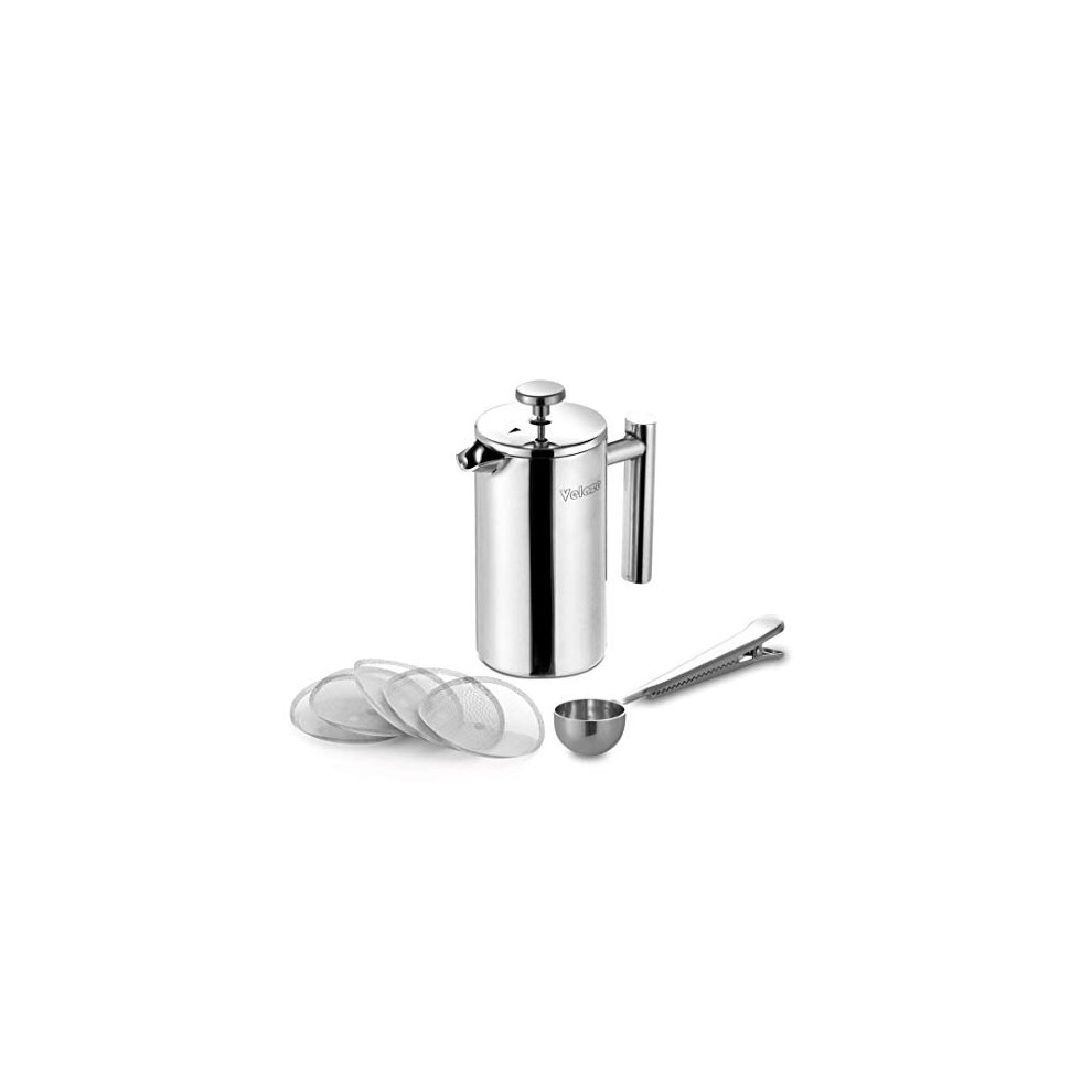 Velaze French Press Coffee Make,0.35Litre/12oz/3 Cup/Stainless Steel Cafetiere Make,Portable Double Wall Cafetiere Includes 5-Layer Filter and 1 Coffee Spoon for Home Office