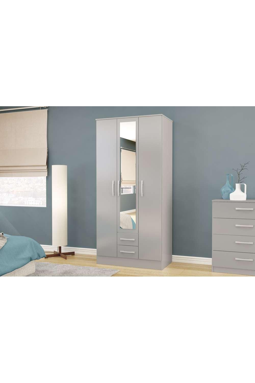 Nera 3 Door Wardrobe with Mirror Shelves and Hanging Rail Tall Wardrobes for Bedrooms Storage (Grey)