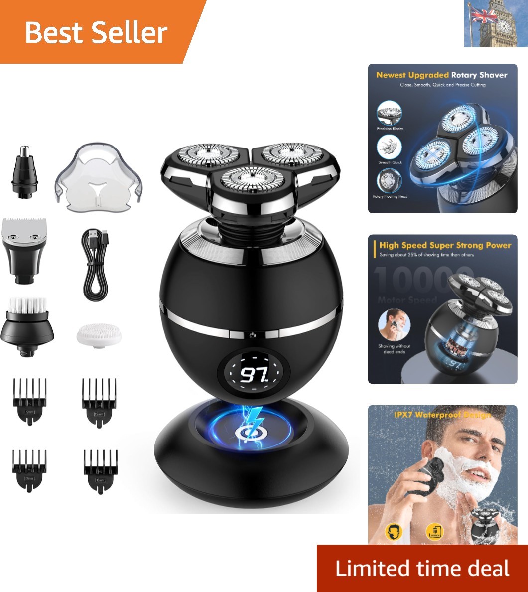 3D Floating Head Electric Shaver - Waterproof Cordless Clipper for Men