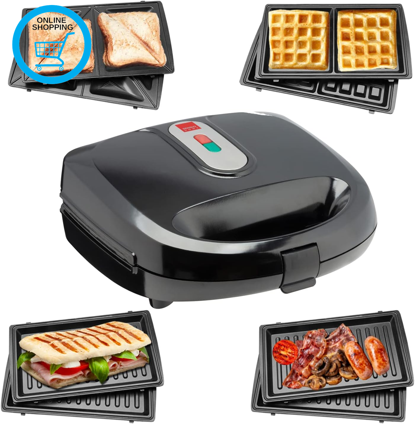 3 in 1 Sandwich Grill Waffle Maker Non-Stick Toaster Panini Press 750w