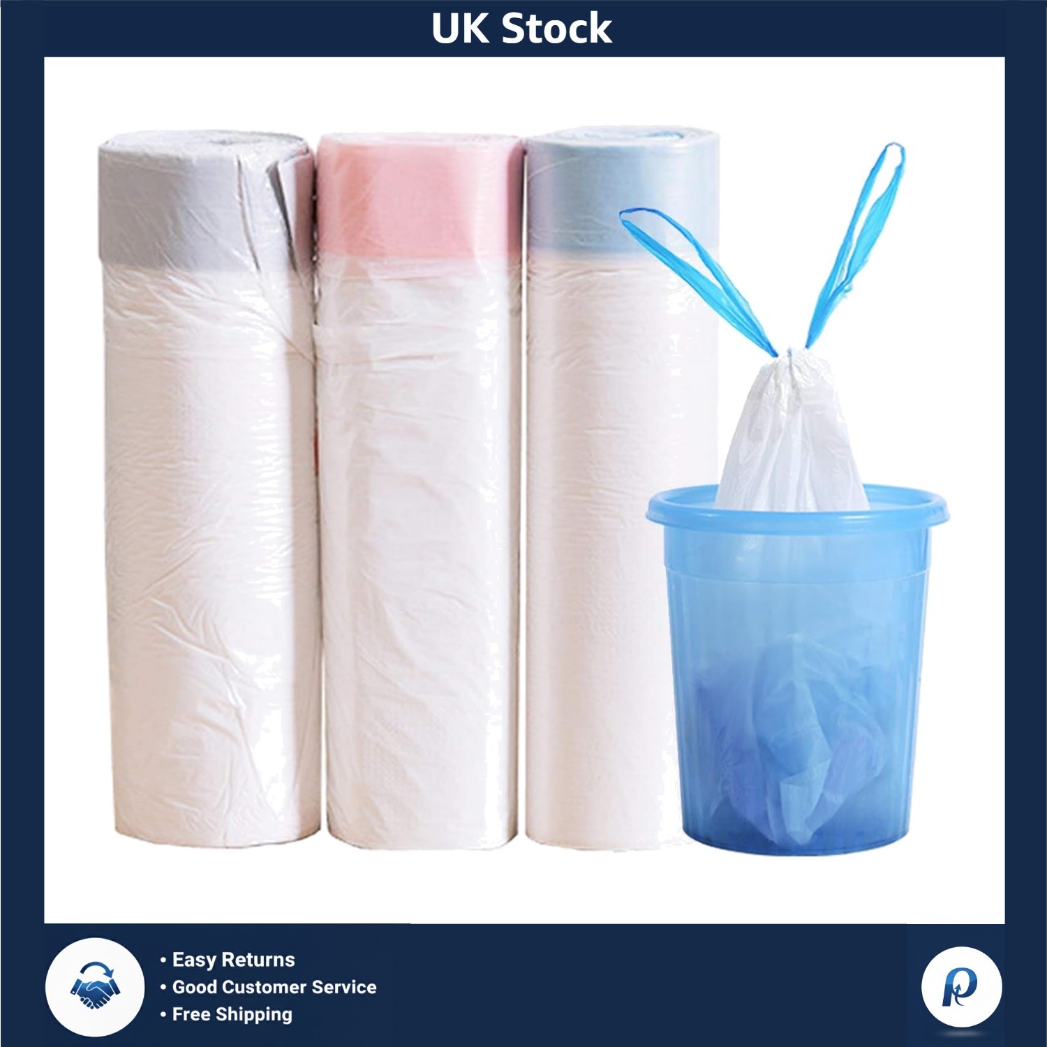 3 Rolls 20L Bin Liners Bin Bags with Drawstring Handle Strong Tall Trash Bags U