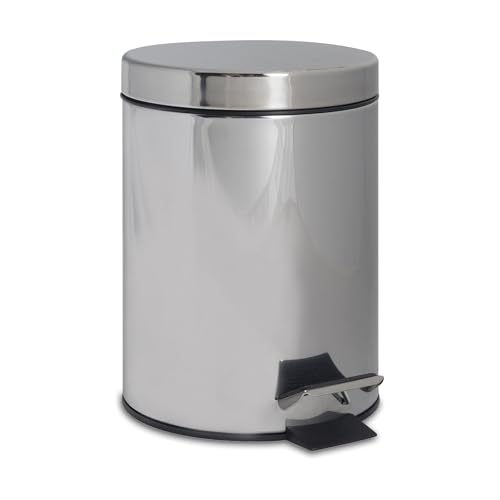 Harbour Housewares 3L Bathroom Bin - Chrome - Round Stainless Steel Pedal Bin Slim Kitchen Rubbish Trash Can Garbage Dustbin with Lid and Inner Liner Bucket