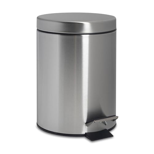 Axentia Stainless Steel Matte Brushed & Rustproof Pedal Bin - 3L Cosmetic Rubbish Bin with Lid for Bathroom & Toilet, Silver/Black, 17 x 17 x 25 cm
