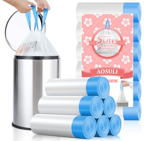 AOSULI 5l Bin Liners Small Bin Bags Bathroom Waste Bags White Pedal Trash Bags 108 Plastic Garbage Bags with Tie Handles Drawstring Toilet,Fit 3-6L Caddy Bin