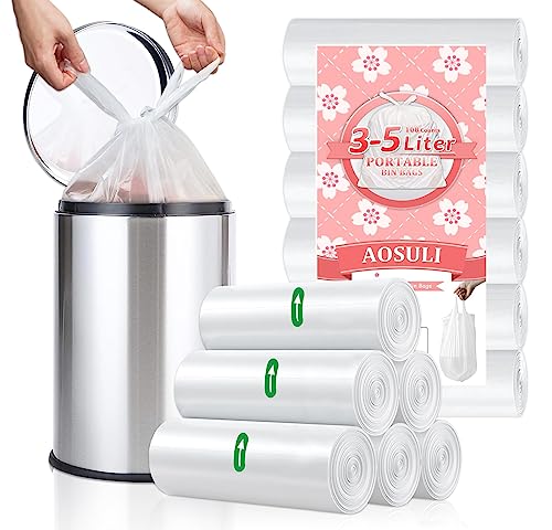 AOSULI Small Bin Bags 3-5l Bin Liners Pedal Clear Plastic Waste Bags with Tie H