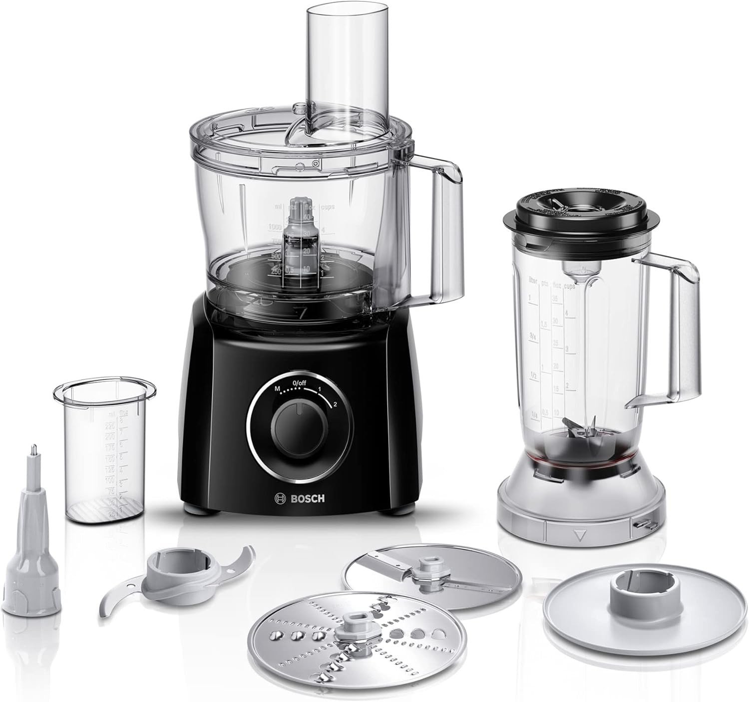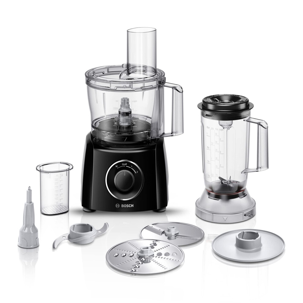 Bosch MultiTalent 3 MCM3201BGB 800W 2.3L Food Processor with 2 speeds, 1 litre blender and/Slicing/Grating/Beating attachments. - Black