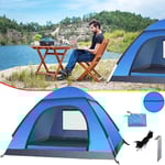 2-3 Man Person Easy to Set Up Automatic Water Resistant Pop Up Tent Double Layer Camping Fishing Shelter & Compact Travel Carry Bag (Blue)