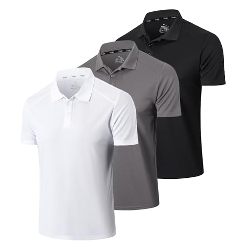 Gaiatiger 3 Pack Mens Polo Shirts Short Sleeve Quick Dry Lightweight Golf Casual Collared Tops Breathable Moisture Wicking Work Shirts(0427) Black Grey White-M