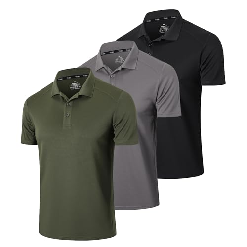 Gaiatiger 3 Pack Mens Polo Shirts Short Sleeve Quick Dry Lightweight Golf Casual Collared Tops Breathable Moisture Wicking Work Shirts(0427) Black Grey Green-M