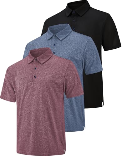 AKAWOOKO 3 Pack Polo Shirts for Men Dry Fit Performance Short Sleeve Golf Polo Shirts, A04, Large