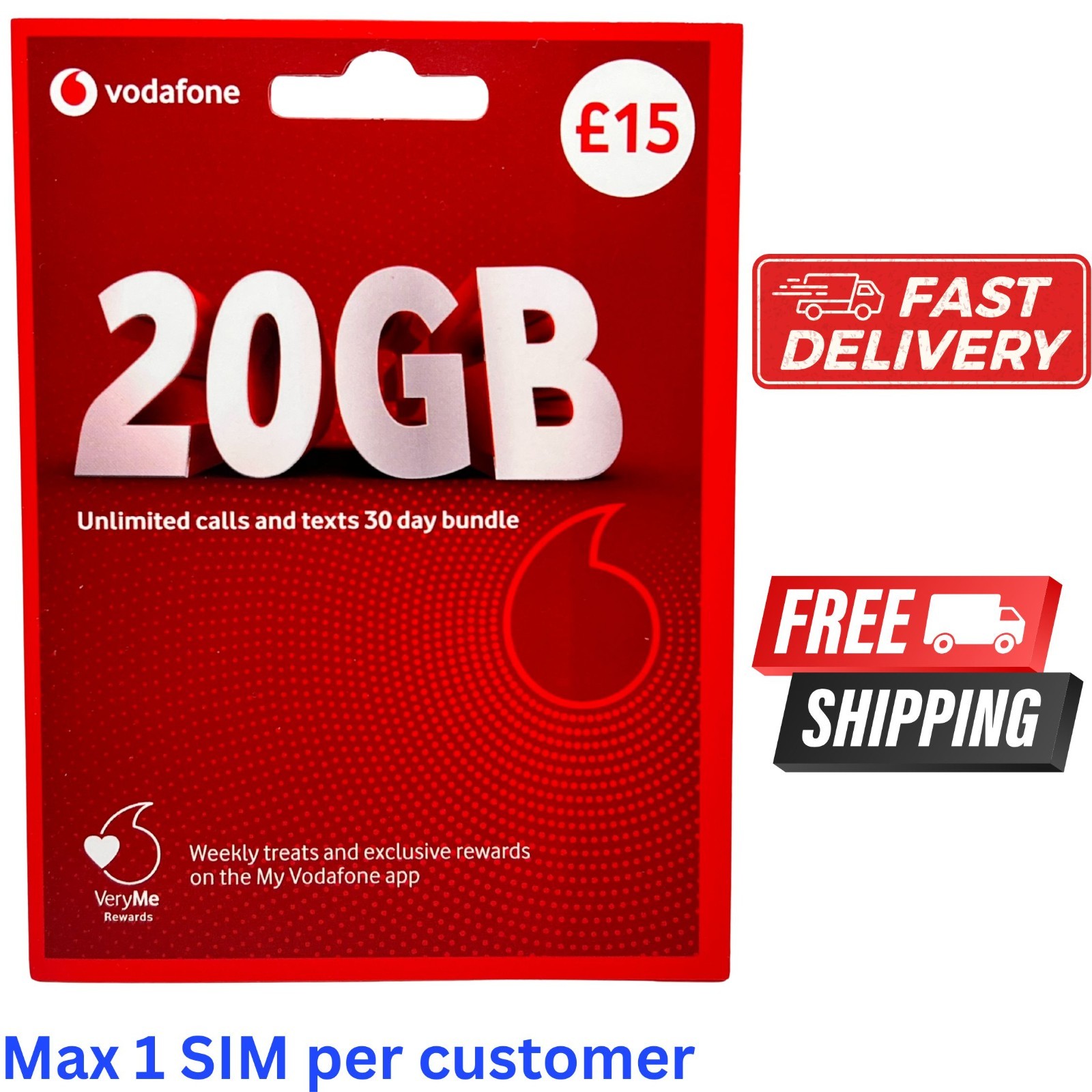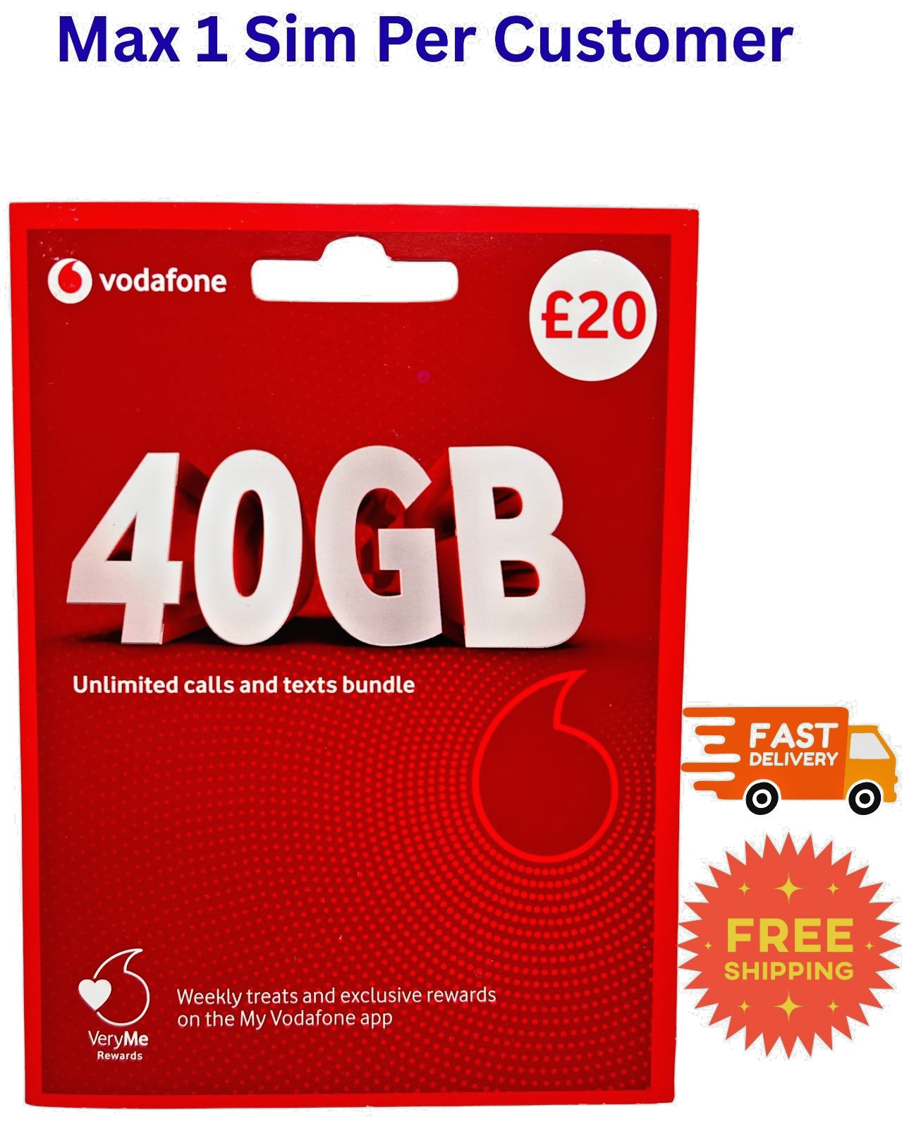Vodafone 30 Bundle UK SIM Card Pay As You Go Pack , Vodaphone 3in1 SIM