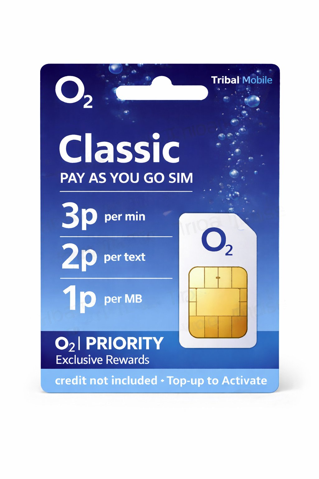 Official O2 Classic Pay As You Go SIM Card – UK - Credit rolls over - 3 in 1 SIM