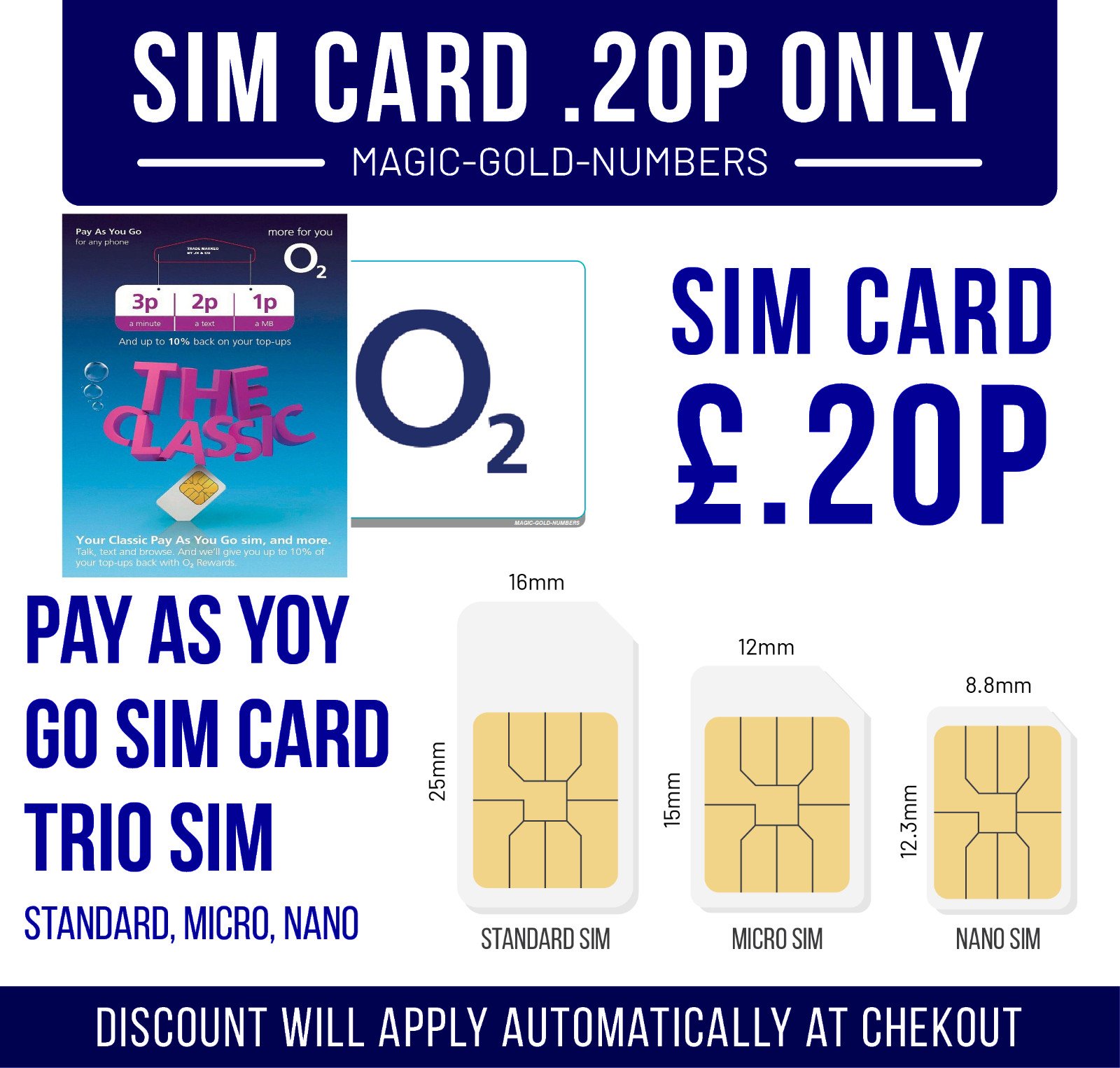 O2 Sim Card Classic 2G/3G/4G Pay As You Go STANDARD MICRO NANO ,,
