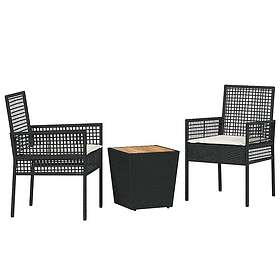 vidaXL Bistro Set 3 Pieces with Cushions Black Rattan 3489450