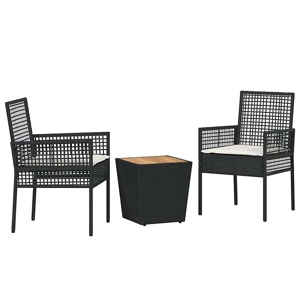 vidaXL 3-Piece Garden Dining Set with Cushions Black Poly Rattan