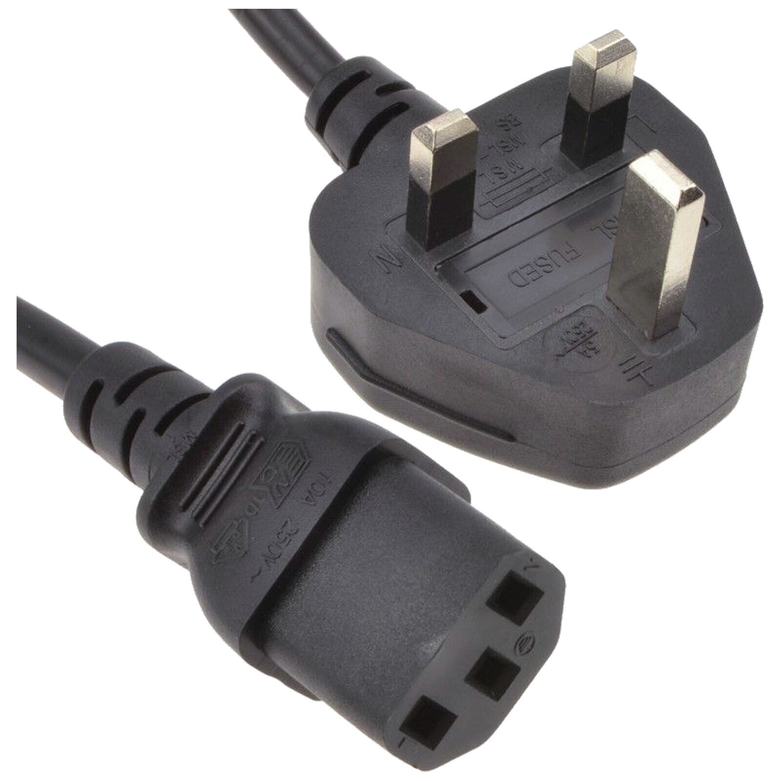 UK 3 Pin Mains Plug IEC C13, Monitor Cable, PC Power lead, Kettle Lead