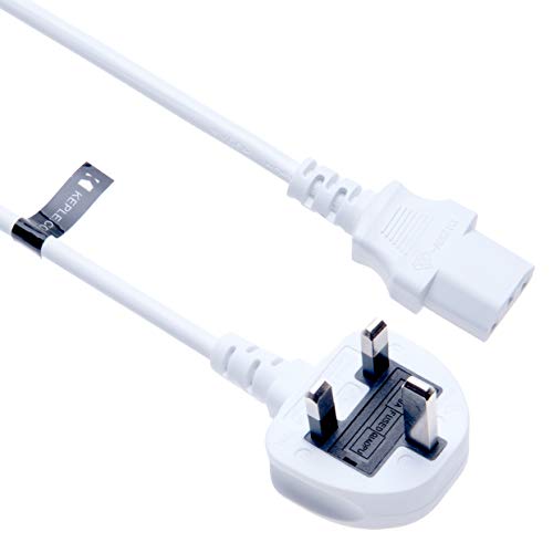 3 Pin Mains Power Lead 3 Prong Plug Cord Kettle Cable Compatible with LG 42LF66 42LF2500 42LF2500-ZA.BEKJLJG 37LG3000 37LG3000-ZA 42LG7000 19LE3300 42CS460 42PX5D 50PT353K (C13 to UK) 3m (White)