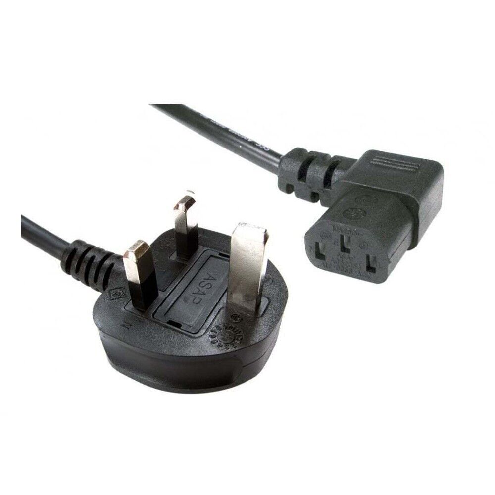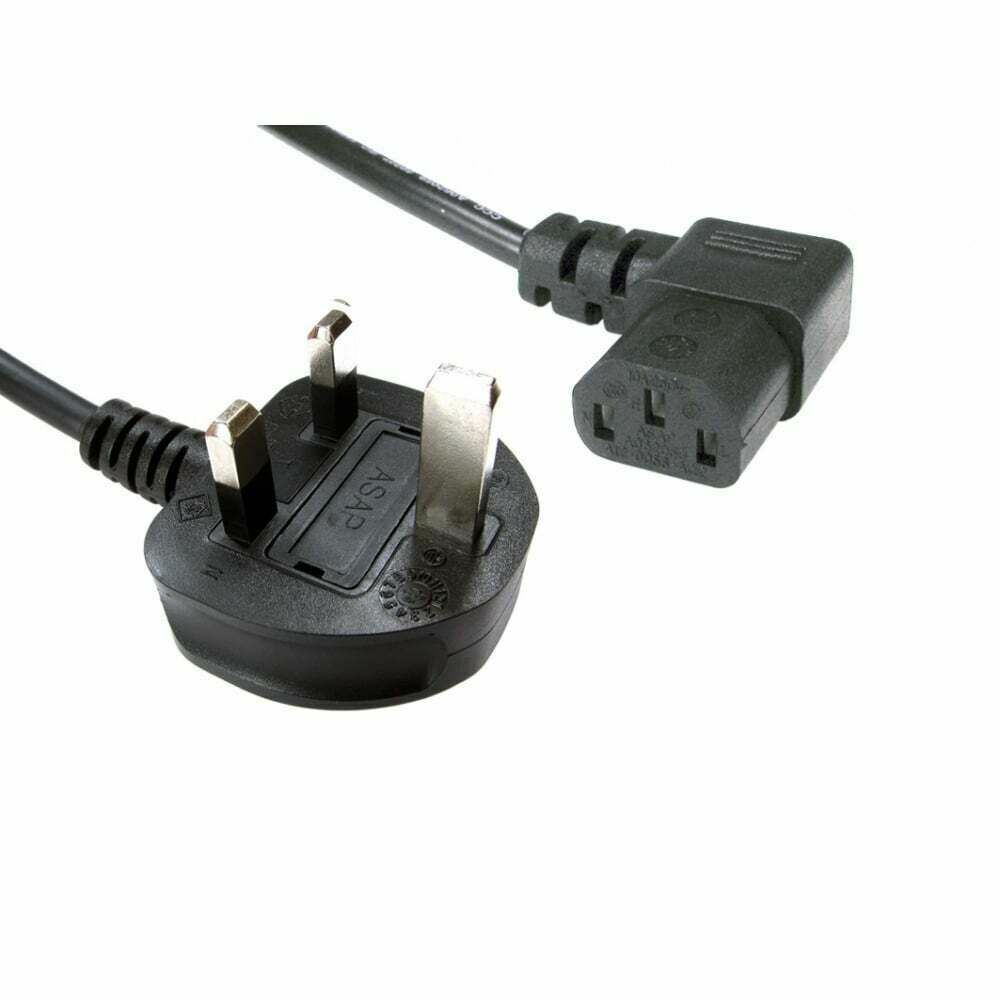 10m C13 Right Angled Socket to 3 Pin UK Plug Mains Power Cable Kettle Type Lead