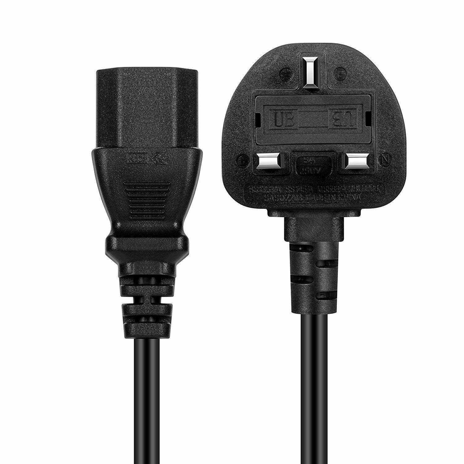 UK Mains 3 Pin Plug to IEC C13 Cable Kettle Lead for PC Monitor Tv Printers Desk