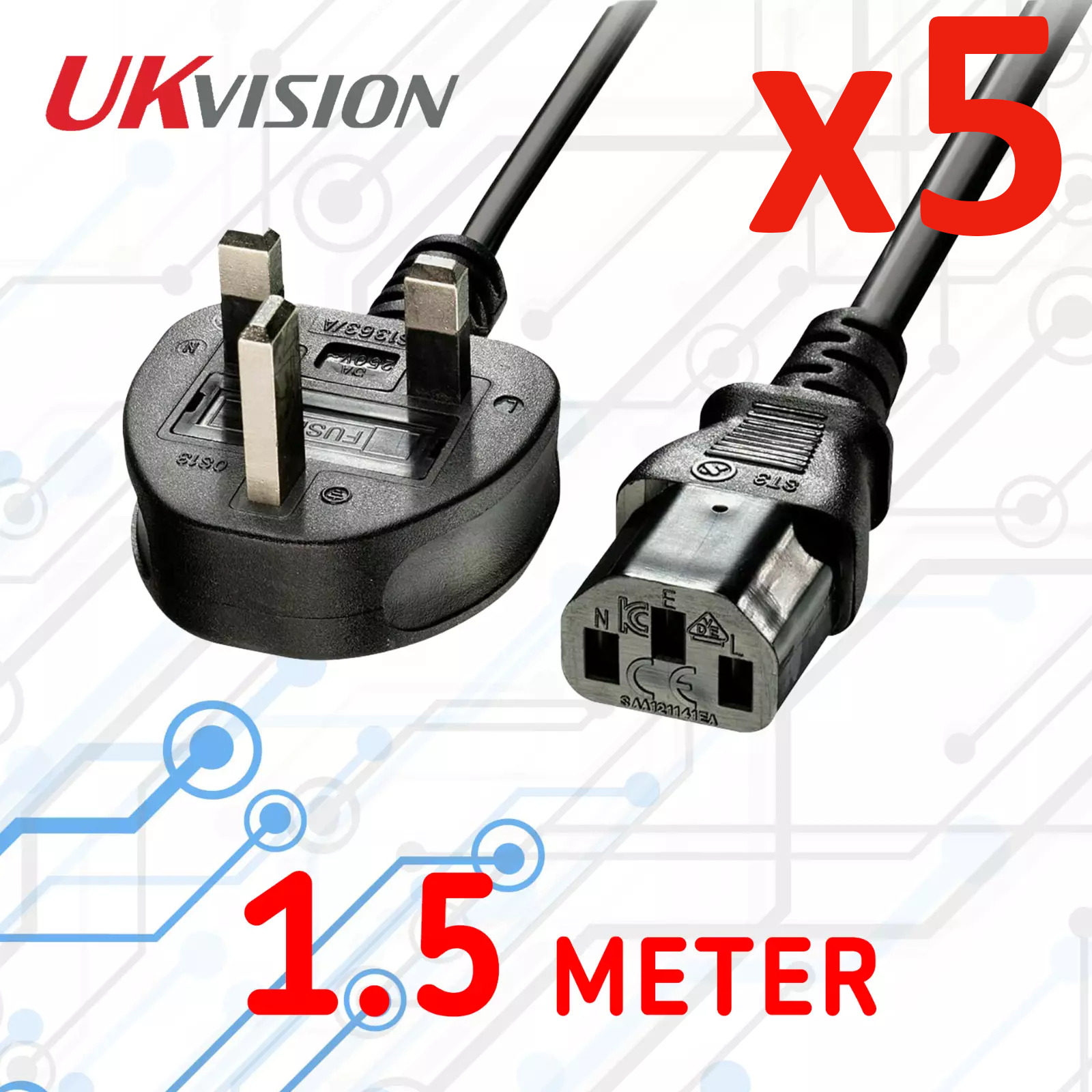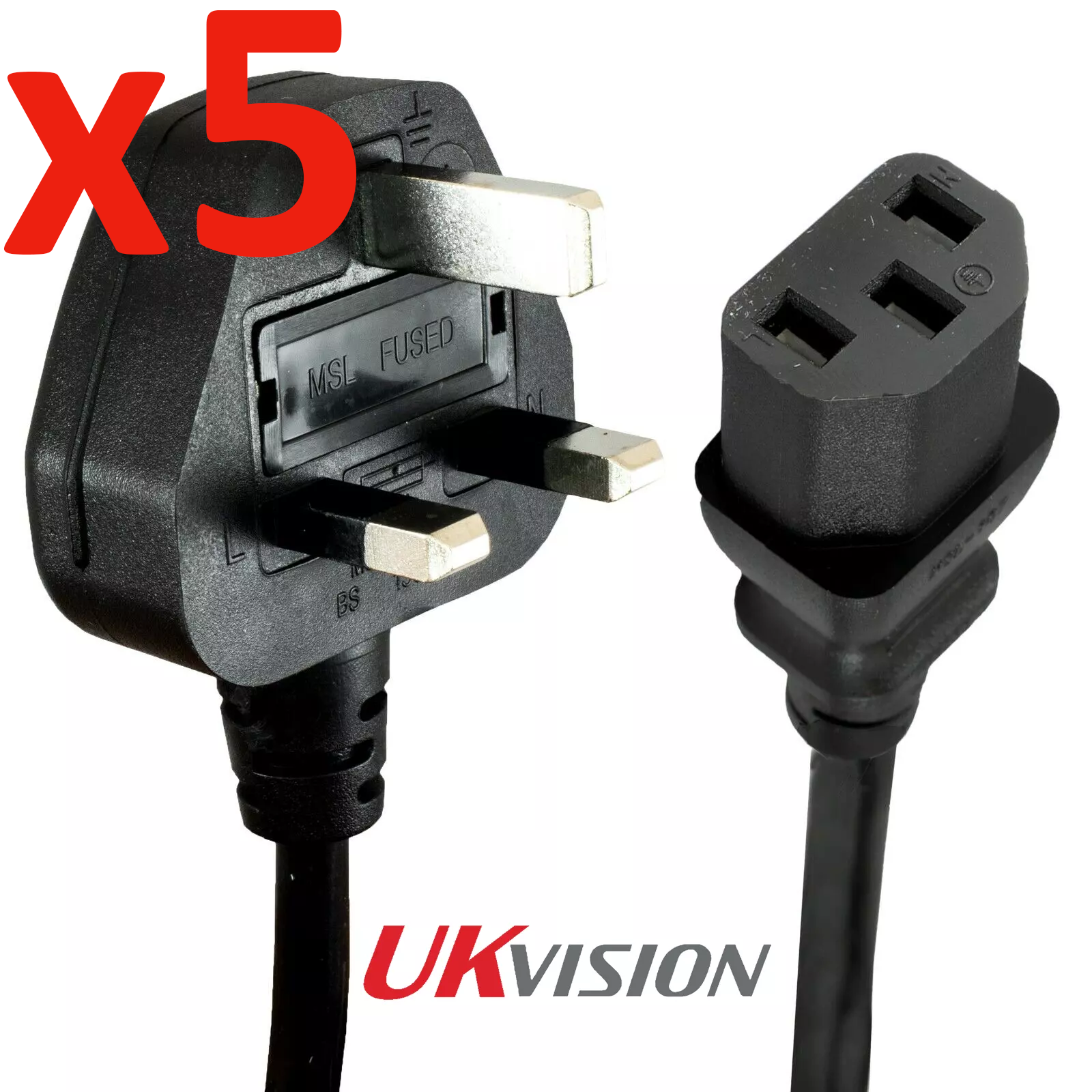 5pcs 1.5m Kettle Lead Power Long Cable 3 Pin UK Plug PC Monitor TV C13 Cord 13 A