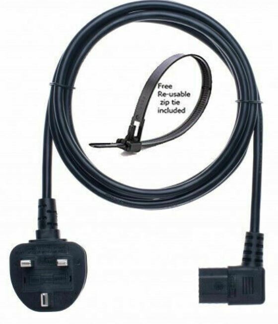 2m UK IEC C13 3 Pin Plug Mains Power Cable Right Angled Lead Cord 90° Kettle VAT
