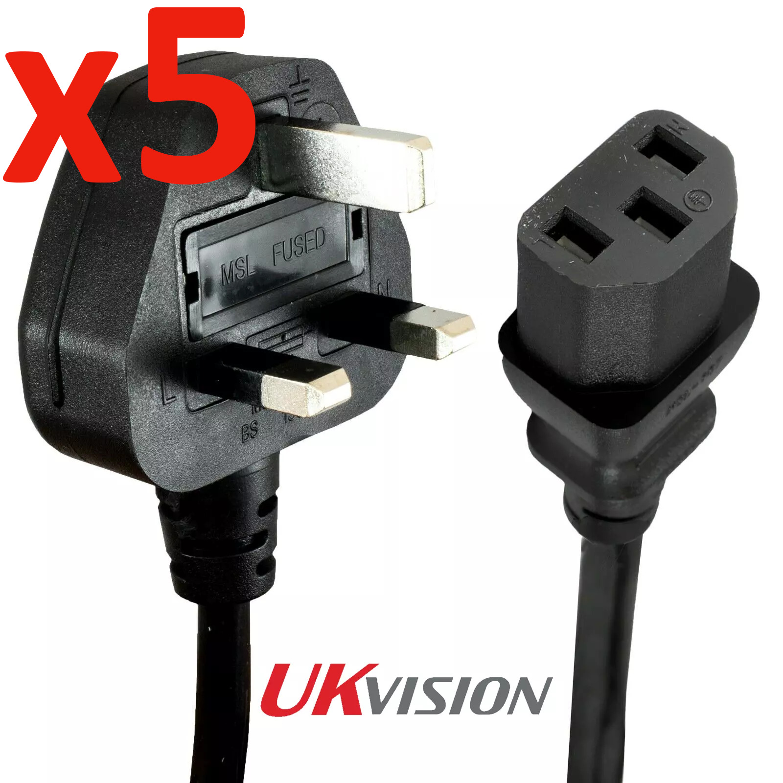 5 Meter IEC Kettle Lead Power Cable 3 Pin UK Plug PC Monitor C13 Cord Black