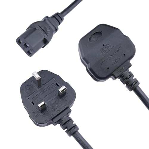 3 Pin Mains Power Lead 3 Prong Plug Cord Right Angle Kettle Cable Compatible with Samsung Toshiba LG Sony Panasonic Acer Asus BenQ Dell Compaq LCD Plasma TV and LED Monitor (C13 to UK 3 Pin Plug) 2m