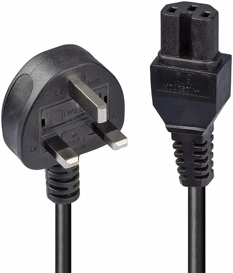 2M UK Mains 3 Pin Plug to IEC C15 Power Cable / Hot Conditioned Kettle Lead, Bla
