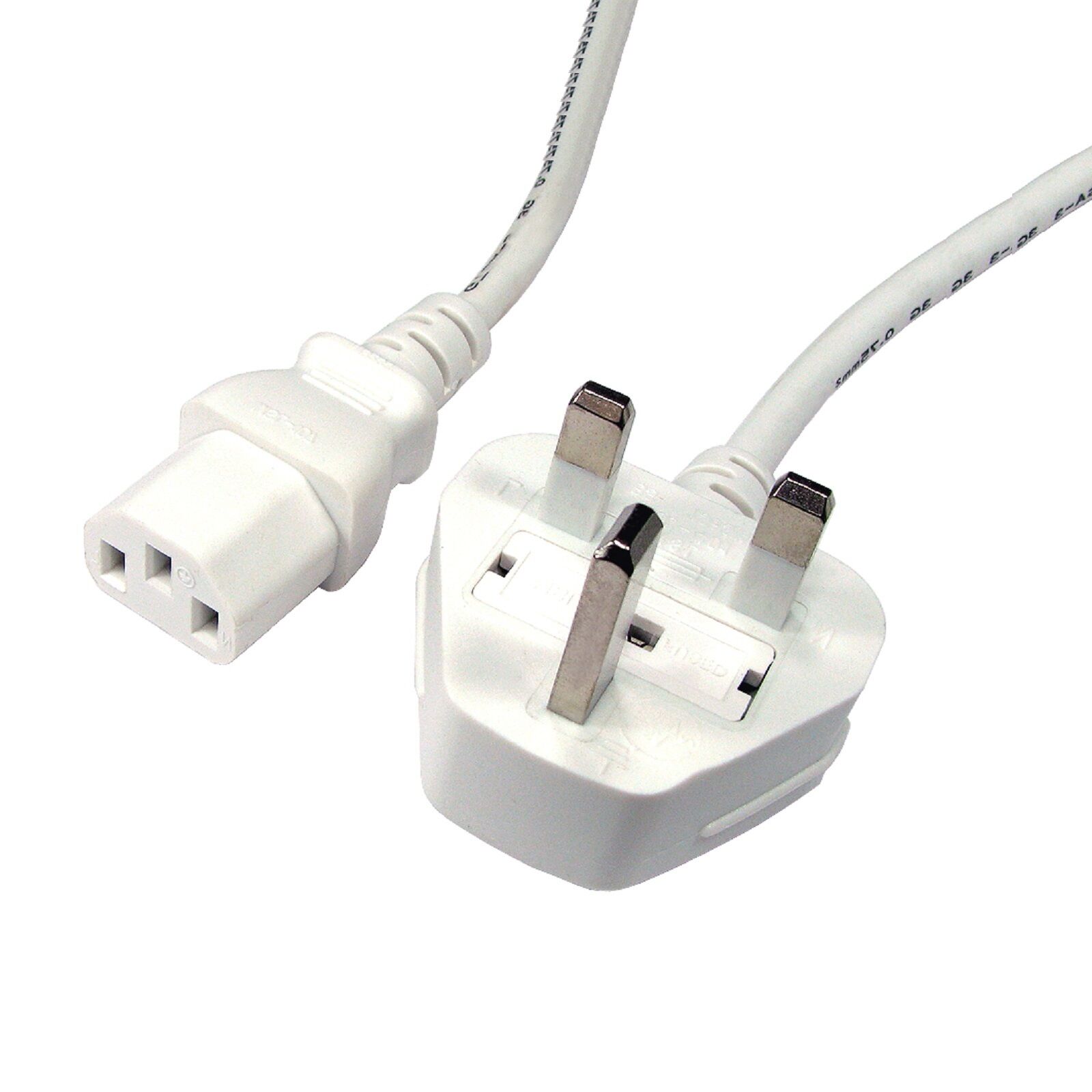 1.9m WHITE 3 Pin UK Mains Power Plug to IEC C13 Kettle Lead Cable PC Monitor TV