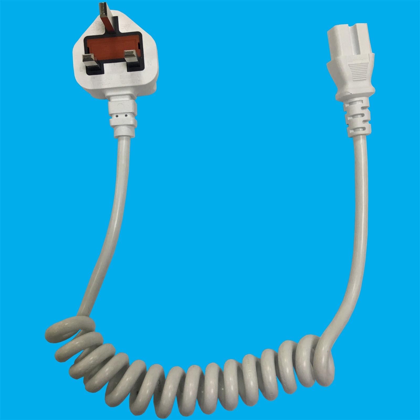 1m 3 Pin UK Mains Power Cable IEC C15 Curly Kettle Lead, Max Pin Temp 120 Deg