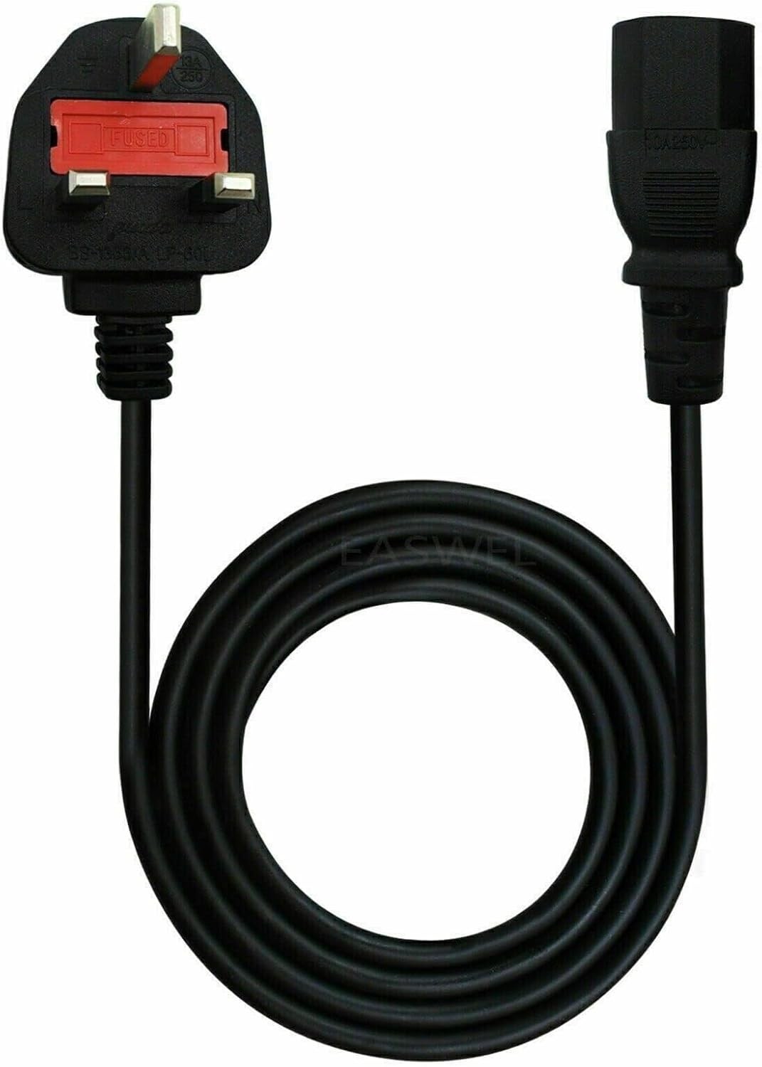 Power Cord For Notebook Mains Cable Kettle Lead Cord UK 3 Pin Plug C13 Socket