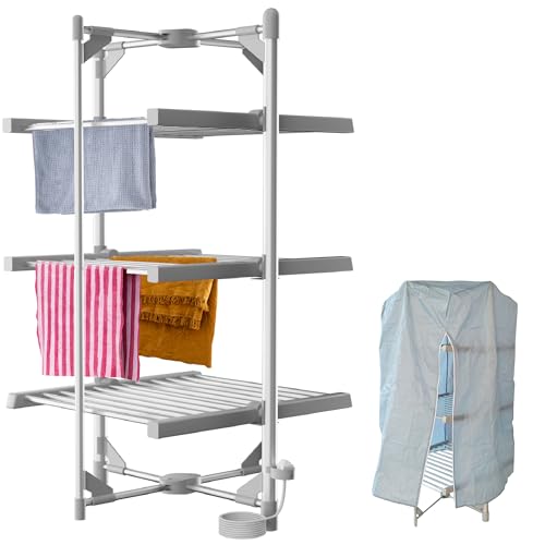 Heated Clothes Airer Dryer Rack Foldable 2300W with Cover - Electric Drying Rack Indoor 3-tier Heated Airer for Apartment and Home Room - Energy Saving Electric Clothes Dryer