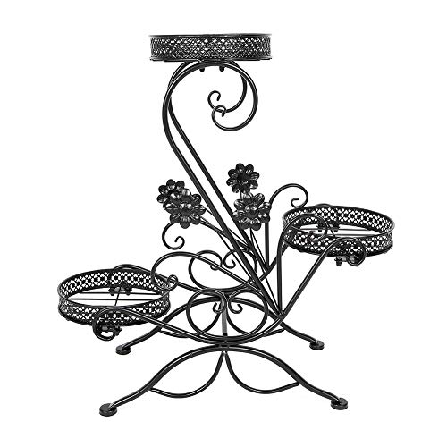 YYALYYON for Plant Stand, 3-Tier Flower Rack for Indoor and Outdoor Use, Heavy Duty Iron with Plum Blossom Design, Easy Assembly, Space Saving for Balcony Patio Living Room (Black)