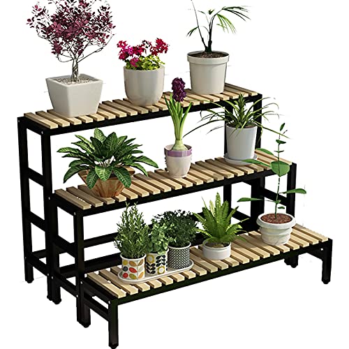 aboxoo 3 Tier Stair Style Large Metal Plant Stand Garden Display Shelf Flower Pot Holder Storage Organizer Rack for Indoor Home Outdoor Patio Ba