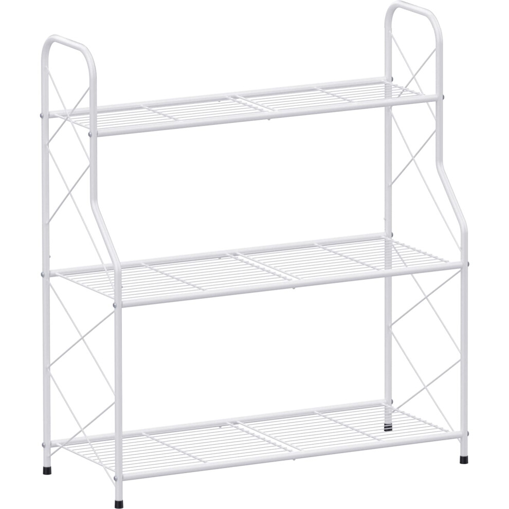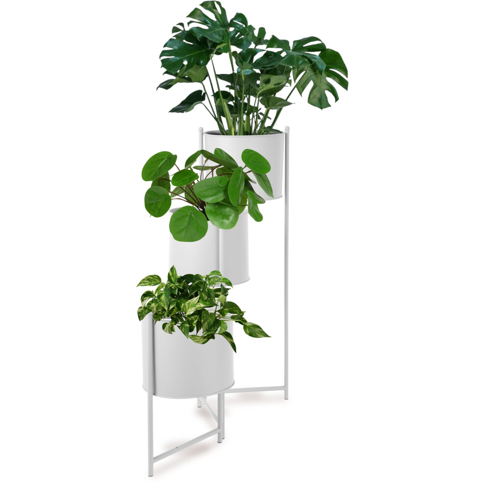 (White) 3 Tier Metal Plant Pot Stand Decoration Indoor Outdoor Flower Display Home Décor